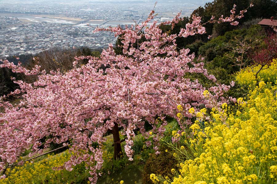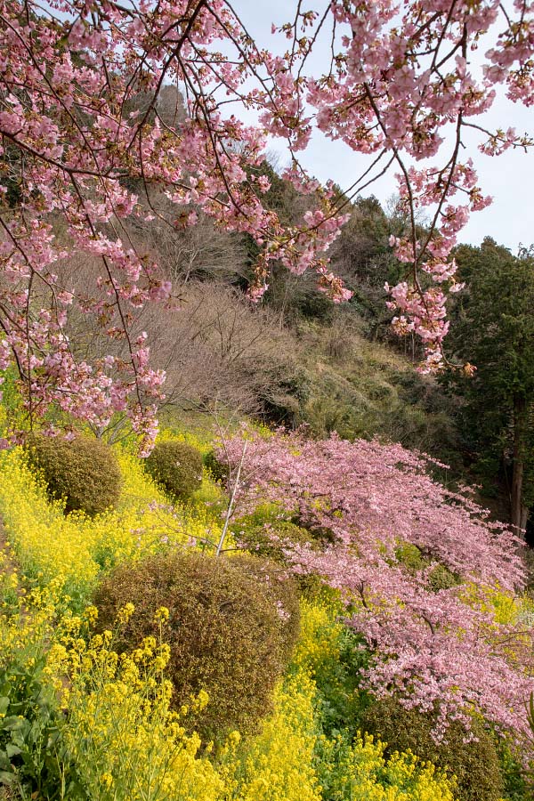 | ここはさらに見晴らしのいい斜面を河津桜と菜の花が覆い尽くしてなかなか壮観で見応えがありました。 |