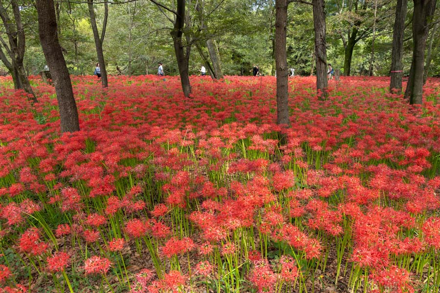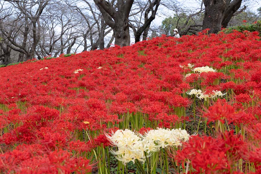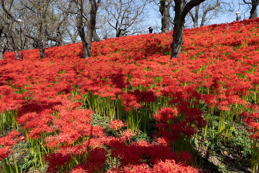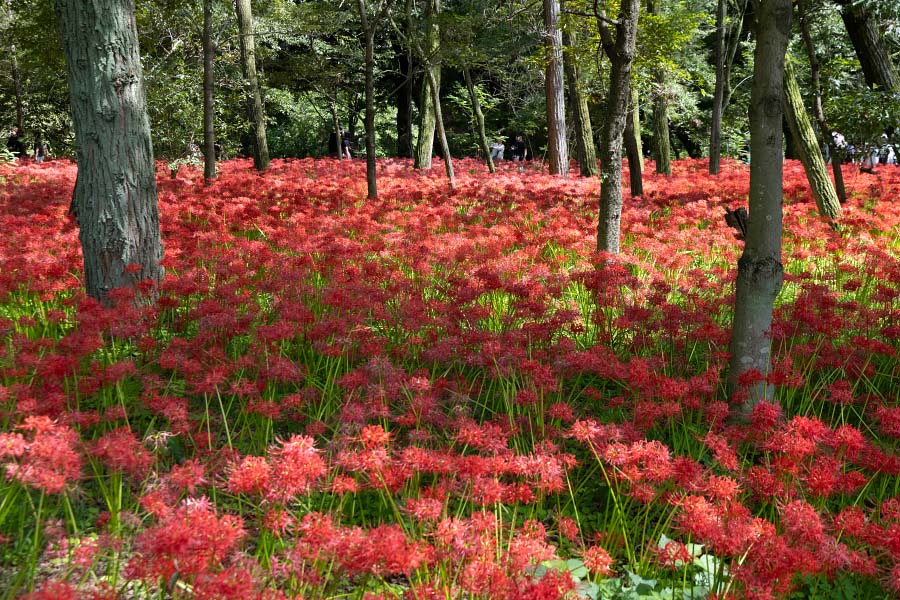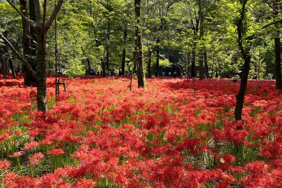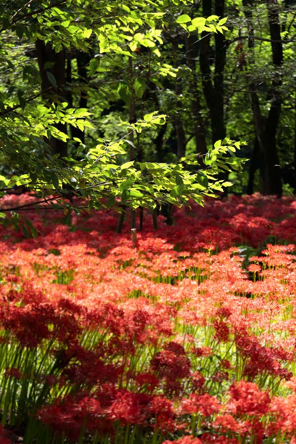 | 権現堂は土手の彼岸花、巾着田は林間の彼岸花です。 | |