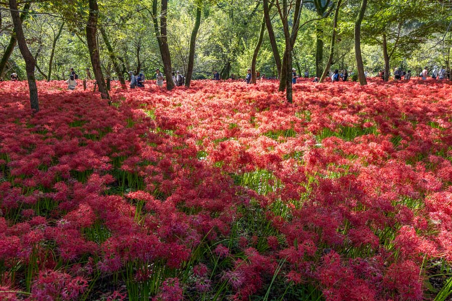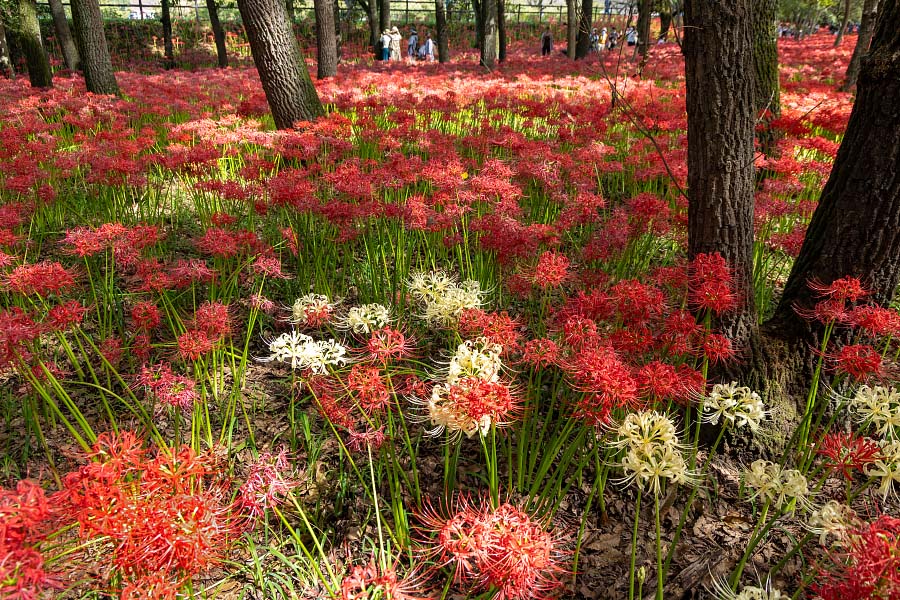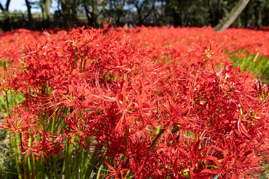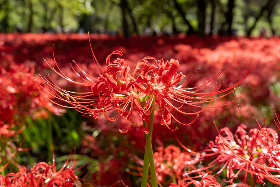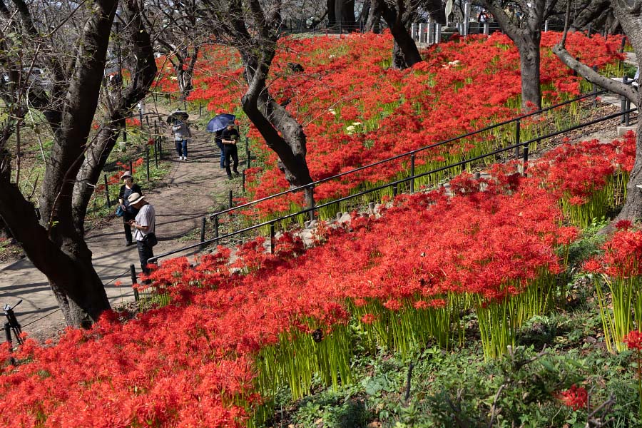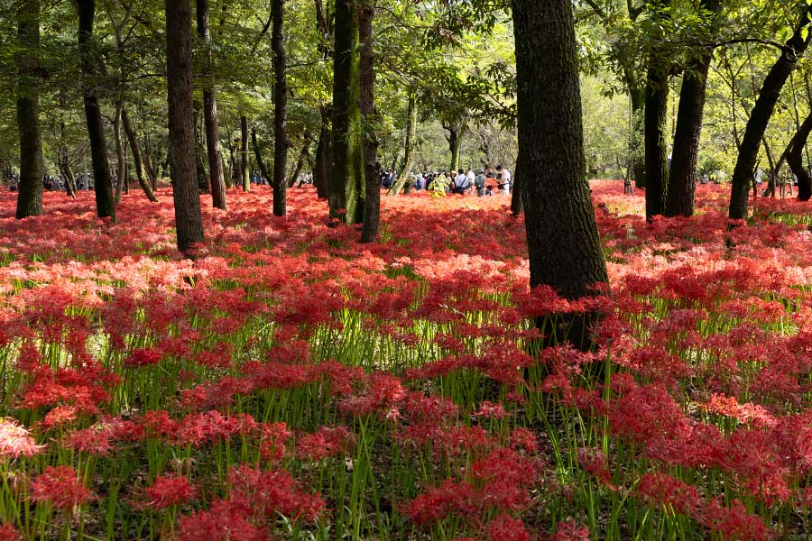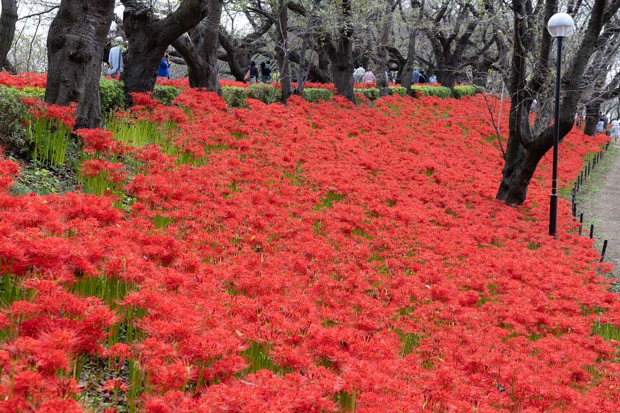 | 権現堂は土手の彼岸花、巾着田は林間の彼岸花です。 | |