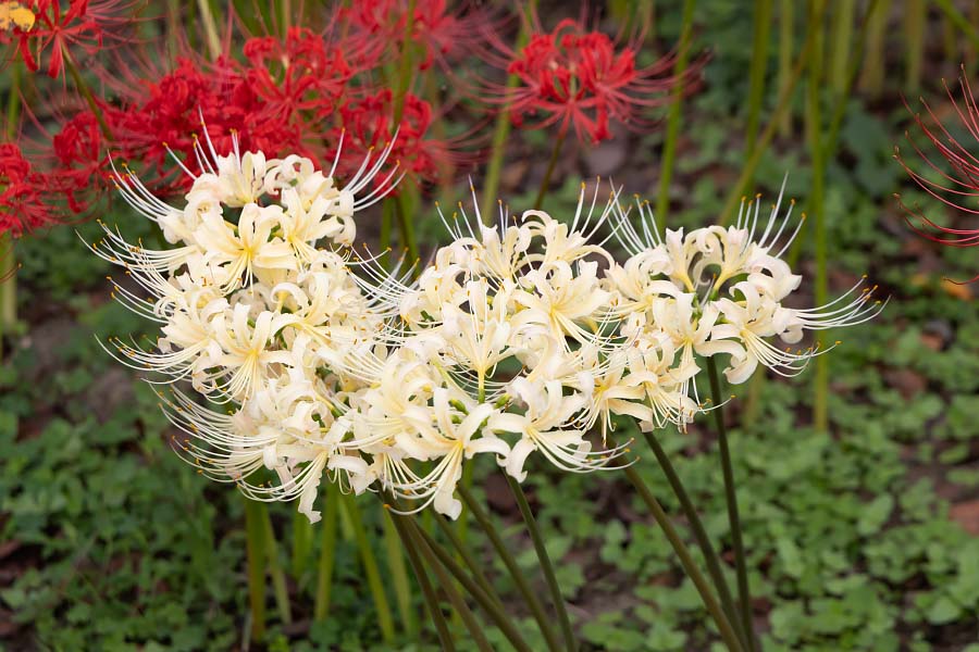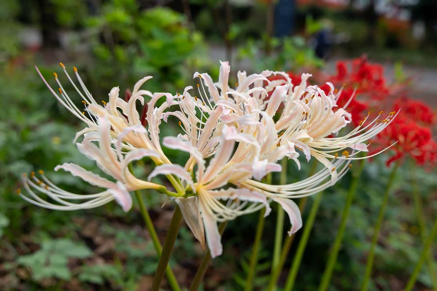 | ここは管理人の自宅からも近いためよく足を運ぶスポットで、散歩の途中に白い彼岸花が咲いている(植わっている?)のを見かけて撮ったものです。 | |