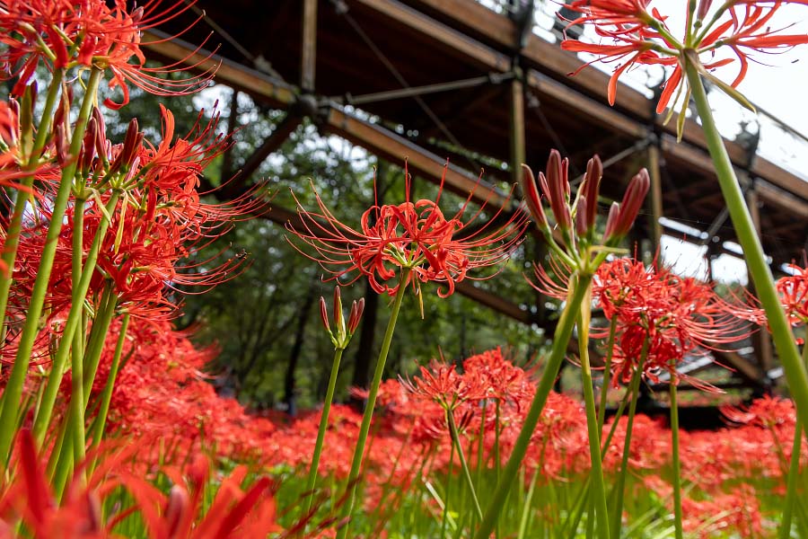 | 「暑さ寒さも彼岸まで」とは本当によくいったもので、あれほど猛り狂った炎暑の日々もウソのように一気に鎮まり、朝晩は薄物では肌寒さを覚えるほどになりました。今年ほど変わることない確かな季節の巡りに思いを致すことはありません。 夏から秋へ季節が移るこの時季は写材に事欠く季節で毎年苦労しますが、彼岸花は紅葉までの「端境期」を埋めてくれる貴重な存在で、N's TOWNでも何度も採り上げてきました。 今年も秋の訪れとともに各地から届く彼岸花の開花情報にせかされて、久しぶりにカメラを連れ出して取材してきたのでその様子をご覧いただきます。 |