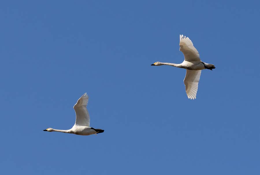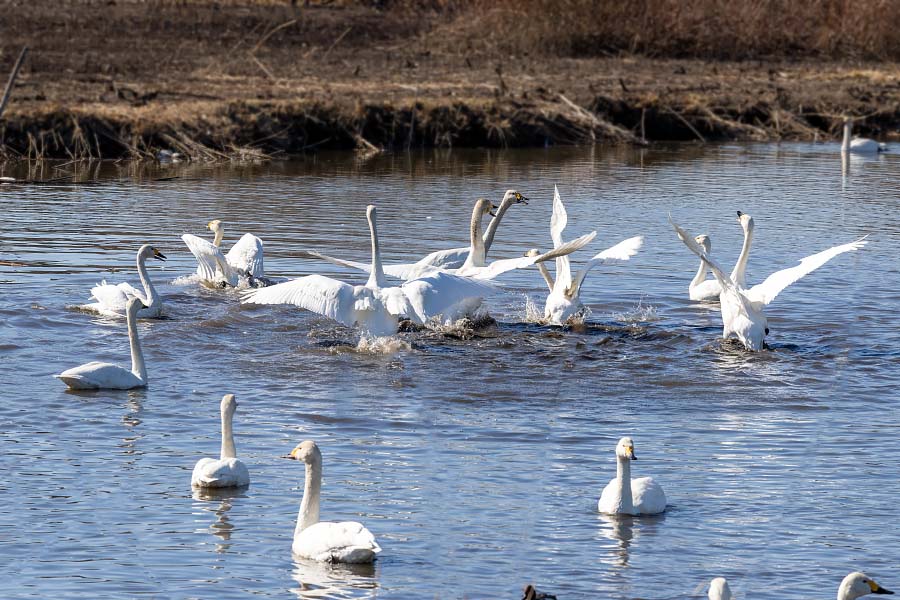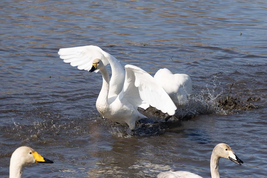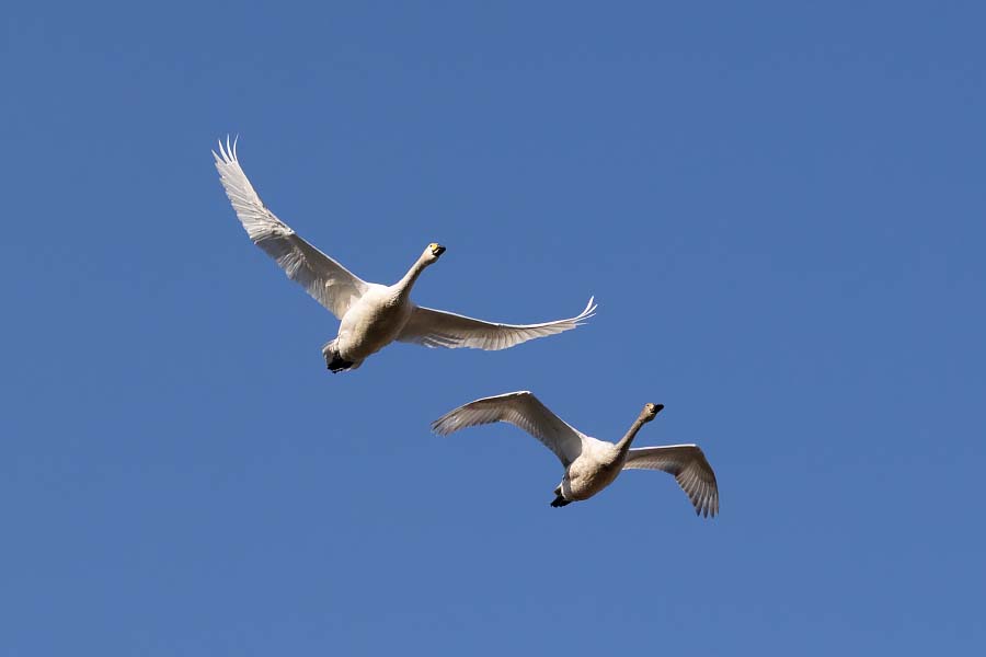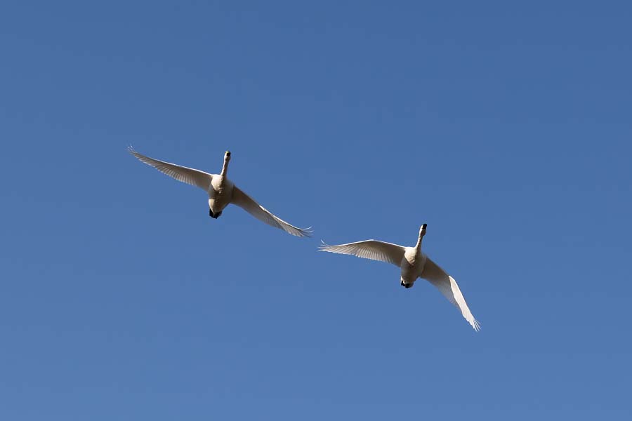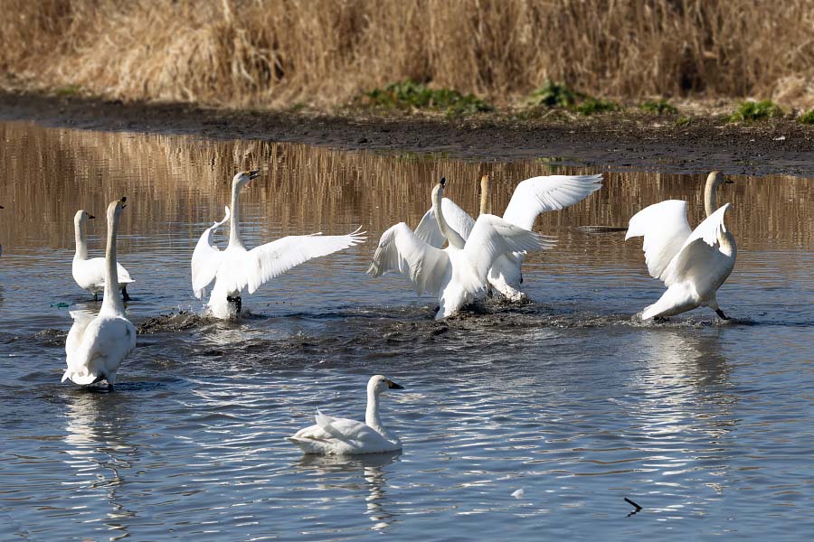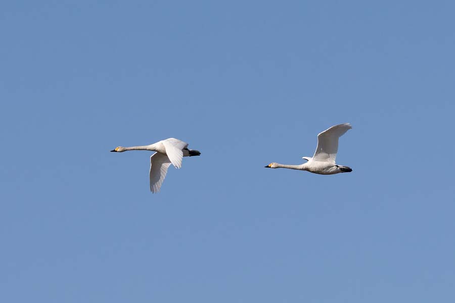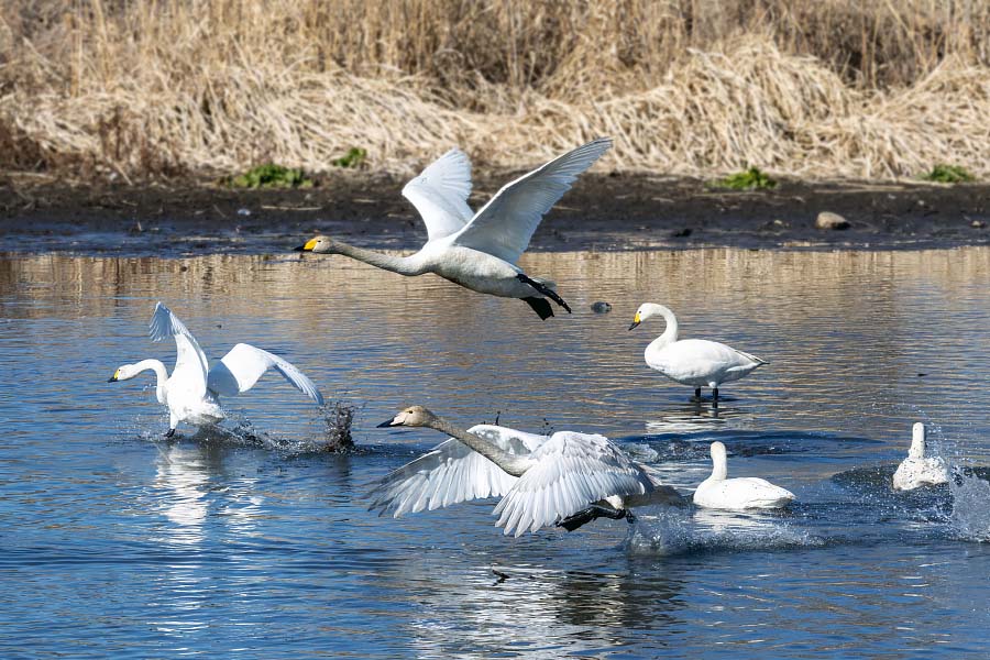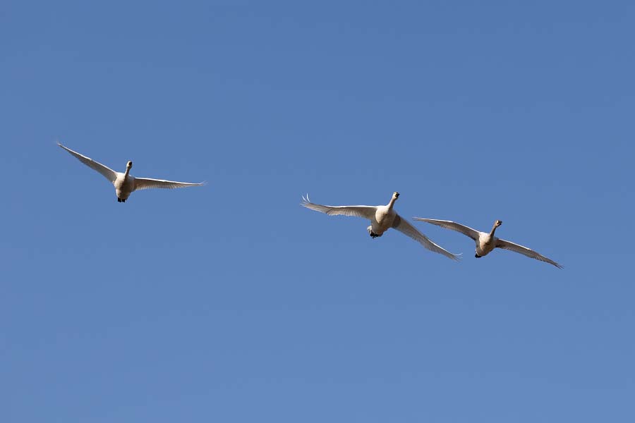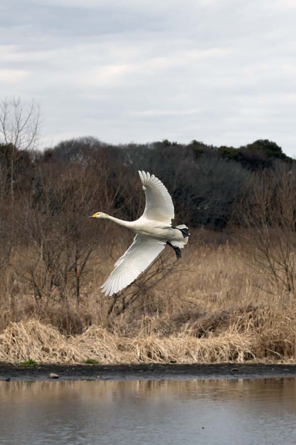 | 菅生沼をねぐらにしている白鳥もいるようですが、「外来」の白鳥もやって来て優美な飛翔を見ることもできます。 | |