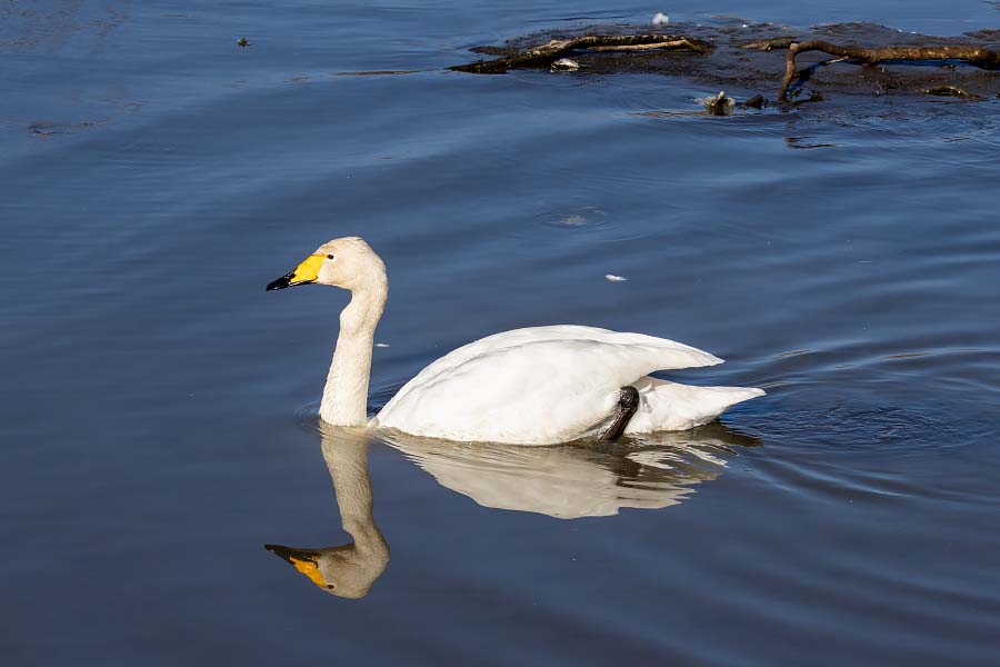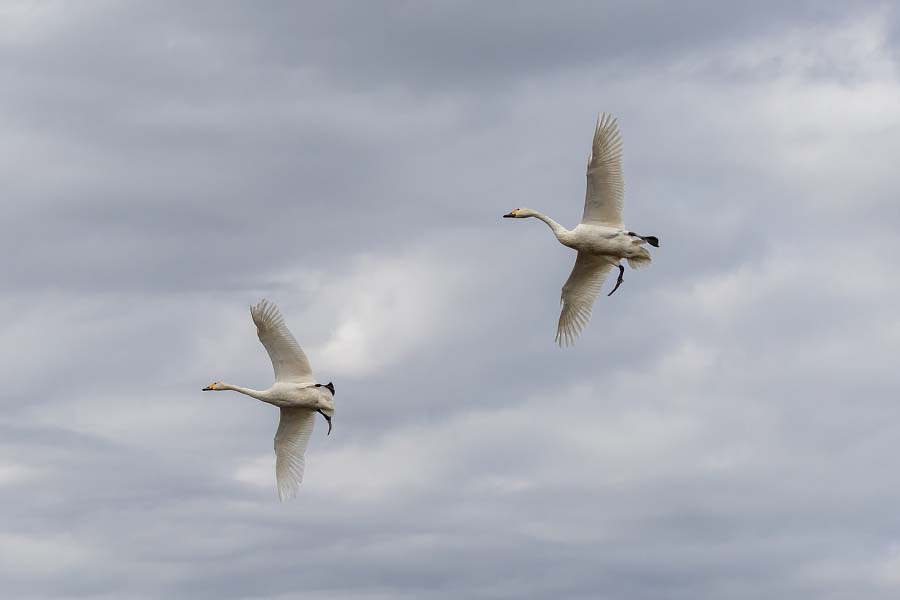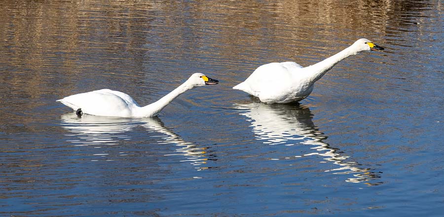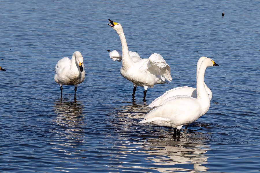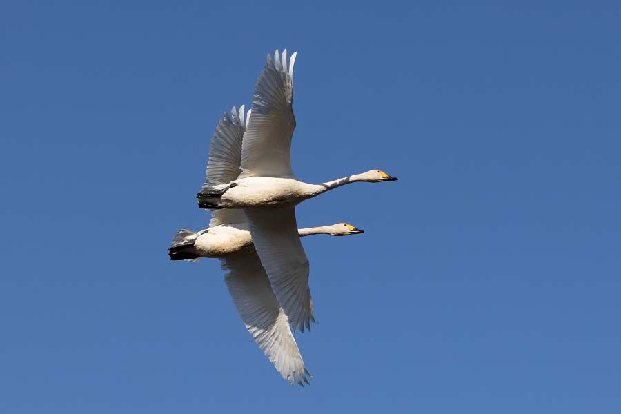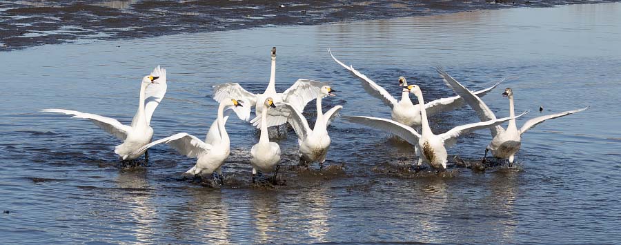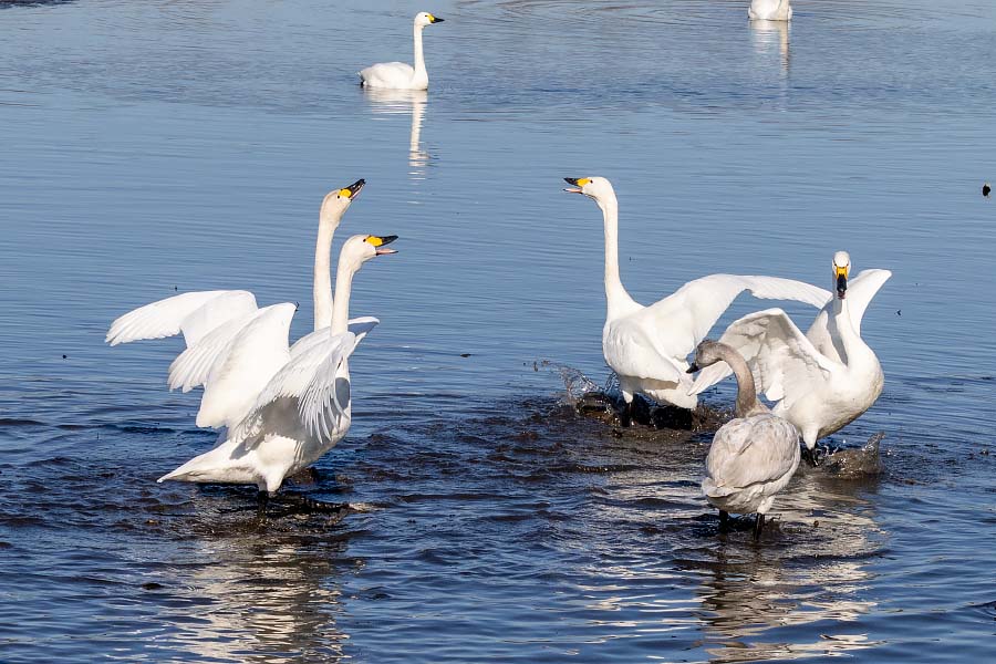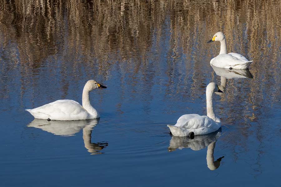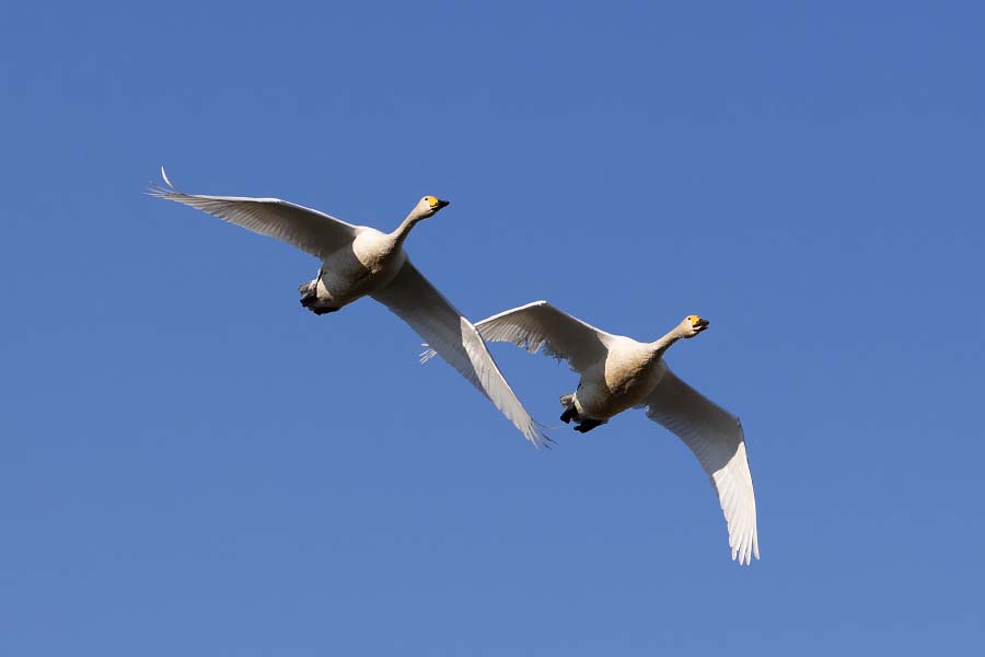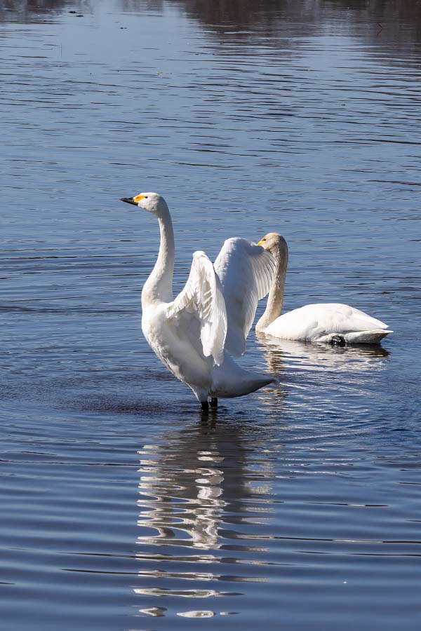 | 菅生沼をねぐらにしている白鳥もいるようですが、「外来」の白鳥もやって来て優美な飛翔を見ることもできます。 | |
