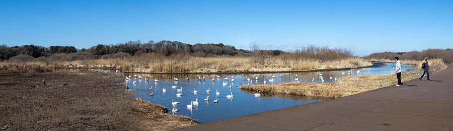 | こちらも駐車場や遊歩道が整備されていますが、この日は白鳥の飛来数が少なく、下沼の「賑わい」には及びませんでした。 | |