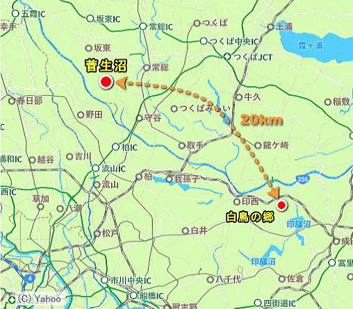 ![]() 茨城県の南部に位置する「菅生沼」(すがおぬま)は、坂東市と常総市にまたがる南北約5キロメートル、東西約200〜500メートルの細長い沼です。 一帯は多種多様な動植物が見られる自然豊かなところで、なかでも広大な水面が広がる南部は「下沼」と呼ばれ、この時季には白鳥が飛来することで有名です。 前号(白鳥の郷@千葉県印西市)に続いてまた白鳥をご覧いただくことになり、「もうお腹いっぱい…」という方も多いと思いますがご容赦ご笑覧ください |
