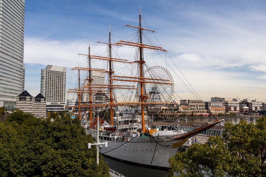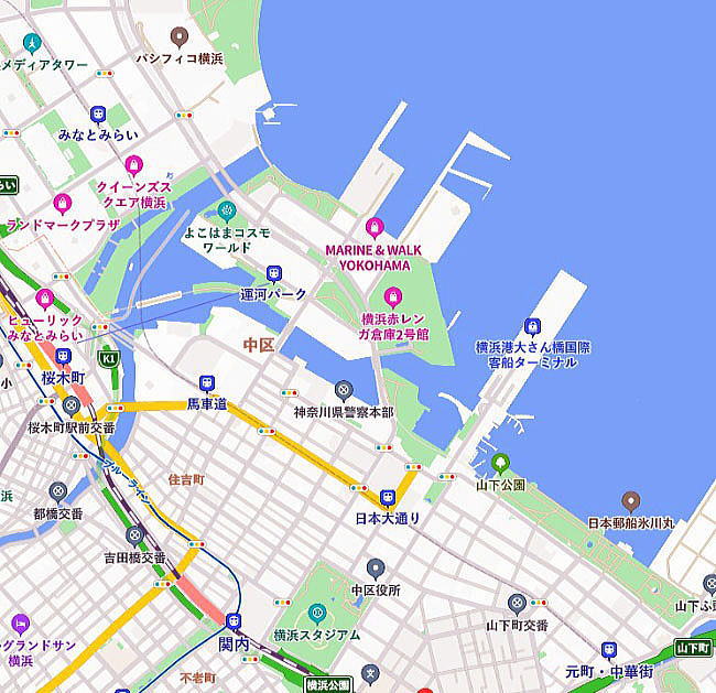 | 山下公園方向です。氷川丸やマリンタワーが見えます。 |