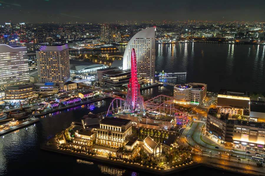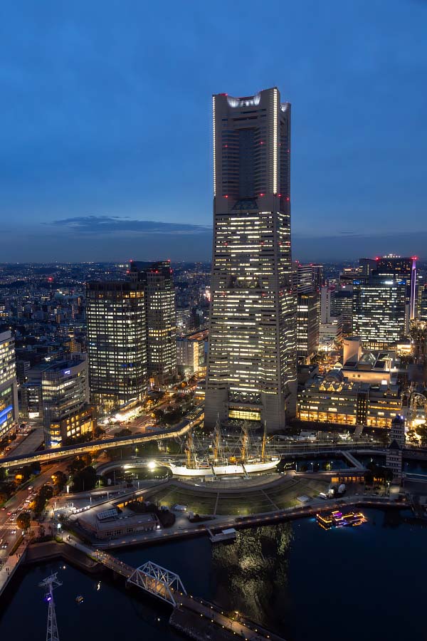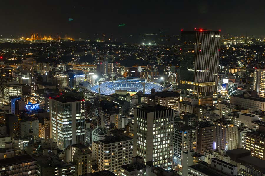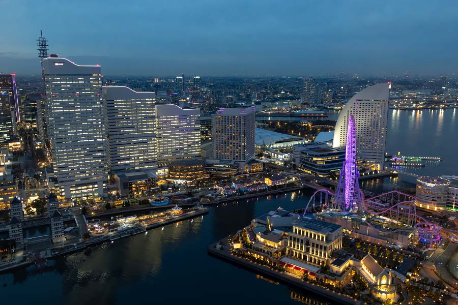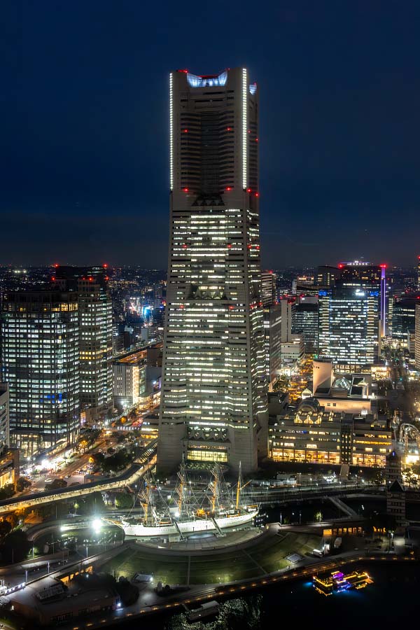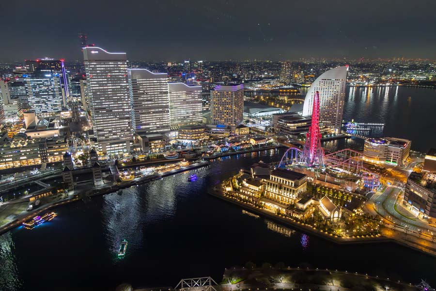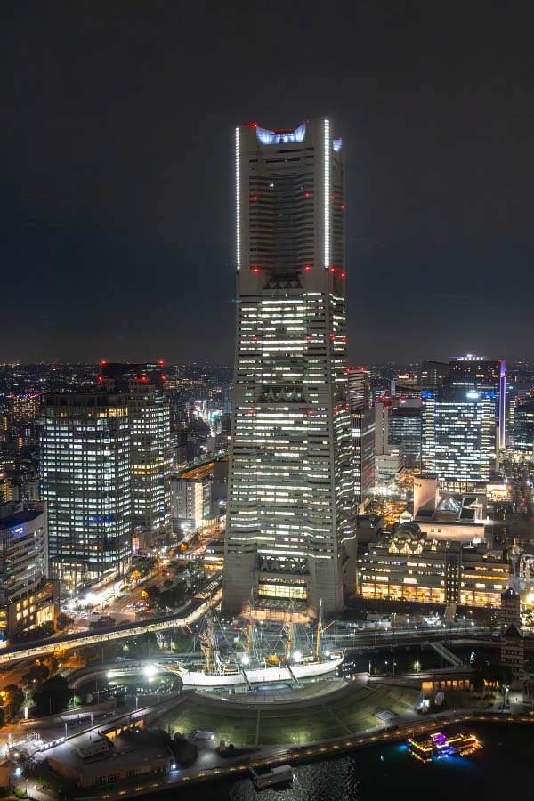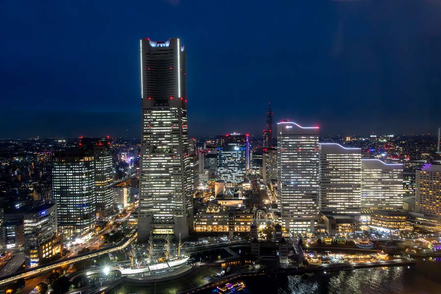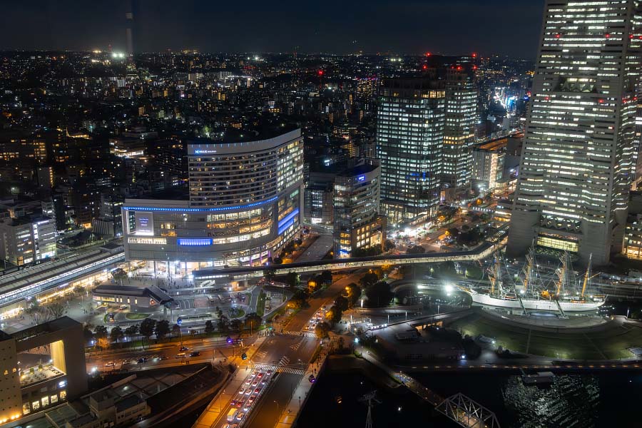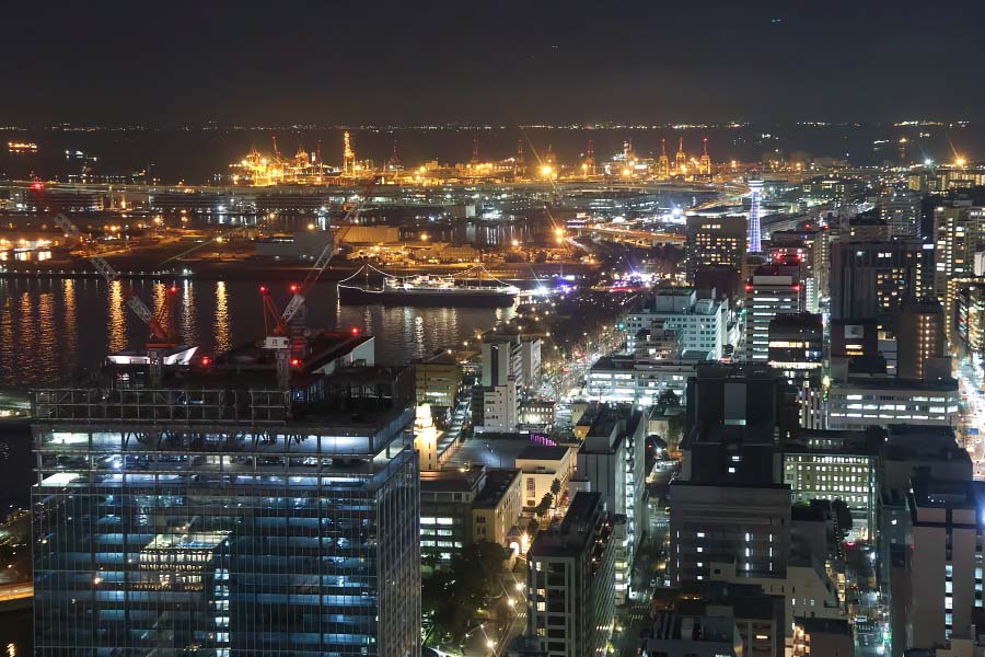 | みなとみらいの夜景といえばランドマークタワーの展望台が定番ですが、改修工事中のため今回は市役所近くの建物から撮影させてもらいました。 | |